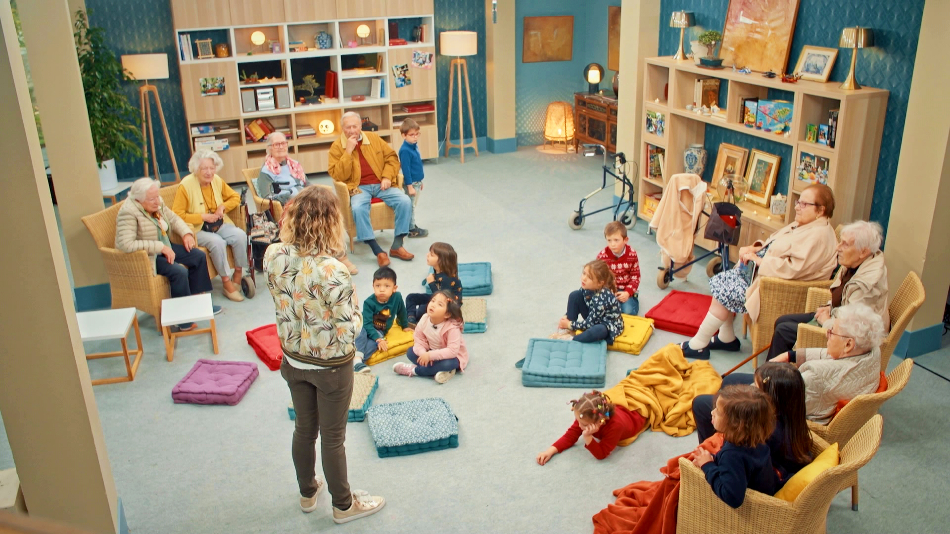 Ce documentaire raconte l'histoire d'une rencontre entre plusieurs générations au sein d'un Ehpad. Durant six semaines, les pensionnaires de l'établissement ont reçu la visite d'une classe de maternelle. Les enfants âgés de 5 et 6 ans se sont immiscés dans le quotidien des nonagénaires donnant lieu à des scènes drôles et touchantes. Les résultats sur le plan thérapeutique et éducatif eux sont surprenants. Même si la Covid-19 a mis un frein à ce genre d'initiatives, elle n'en reste pas moins une expérience sociale et humaine extraordinaire et pleine d'avenir.